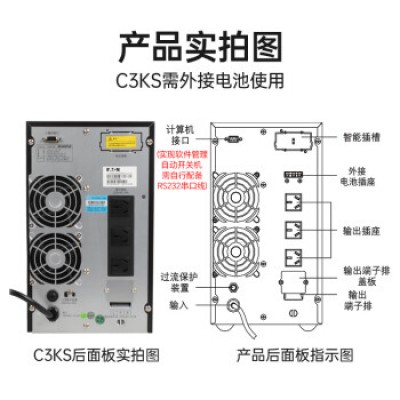 首页 > 电气设备 > 不间断电源 > 山特(SANTAK)在线式UPS电源不间断电源长效机服务器断电稳压续航 C3KS 3000VA/2400W 续航供电120分钟