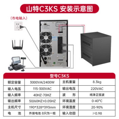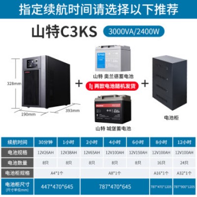 山特(SANTAK)在线式UPS电源不间断电源长效机服务器断电稳压续航 C3KS 3000VA/2400W 续航供电120分钟
